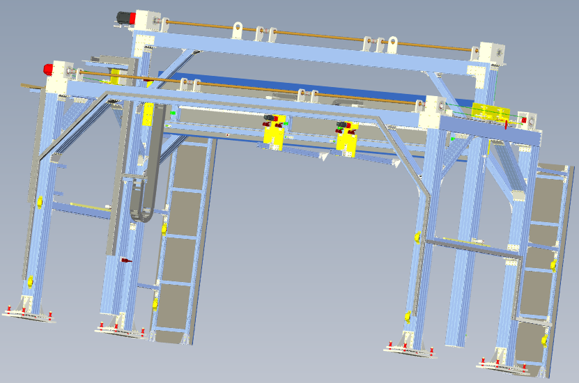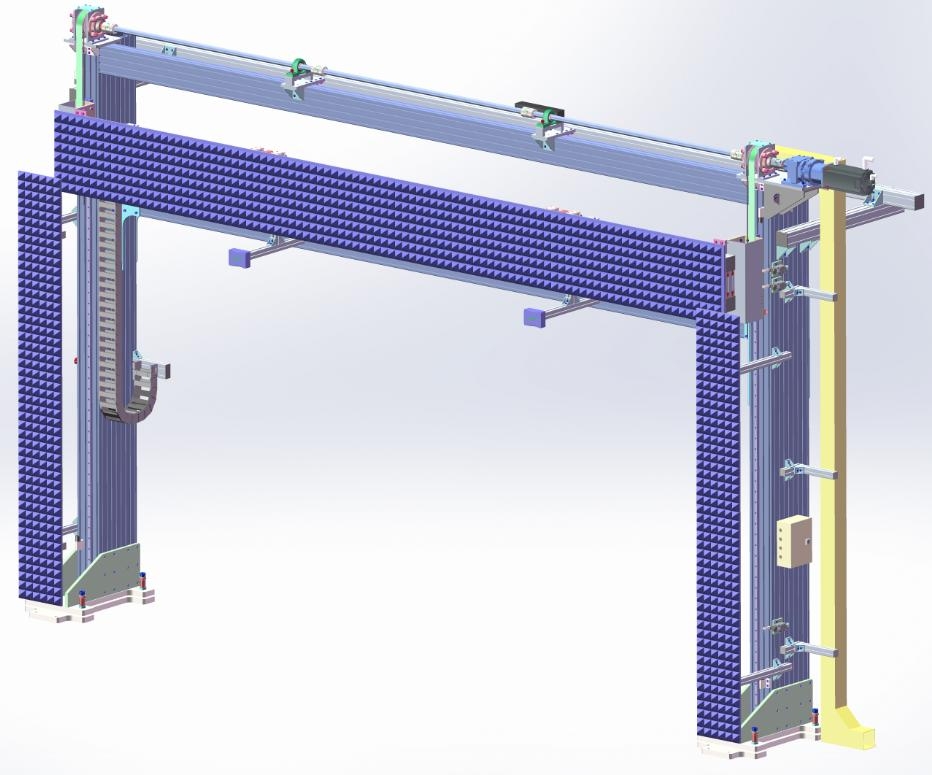 采用铝合金龙门式结构支撑BSD反射三角锥,在X轴方向上配备西门子伺服电机及直线滑轨,自动移动采用同步伺服驱动同步带传动方式, 在Y轴方向上配备西门子伺服电机及圆柱滑轨,自动移动采用伺服驱动齿轮齿条传动方式,在Z方向上配备西门子伺服电机及直线滑轨,自动移动采用同步伺服驱动同步带传动方式,并且精确定位,X向移动速度大于150mm/s、Y向移动速度大于250mm/s、Z向移动速度不大于150mm/s。