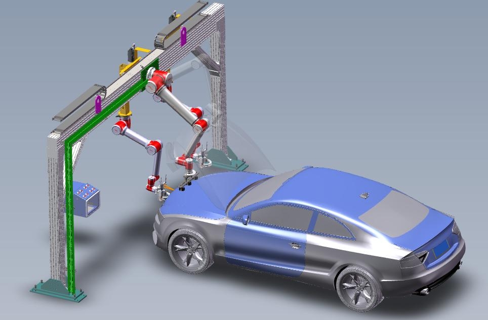 3D视觉识别定位,吸盘吸附机构自动开启引擎盖,精准操作;