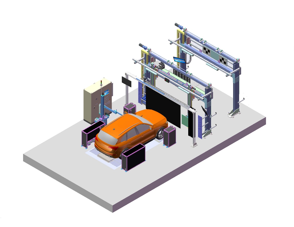 采用铝合金龙门式结构支撑ACC标定目标板,在Y轴方向上配备西门子伺服电机及圆柱滑轨,自动移动采用伺服驱动齿条传动方式,在Z轴方向上配备西门子伺服电机及直线滑轨,自动移动采用伺服驱动同步带传动方式,并且精确定位。Y向移动速度大于250mm/s、Z向移动速度大于150mm/s。